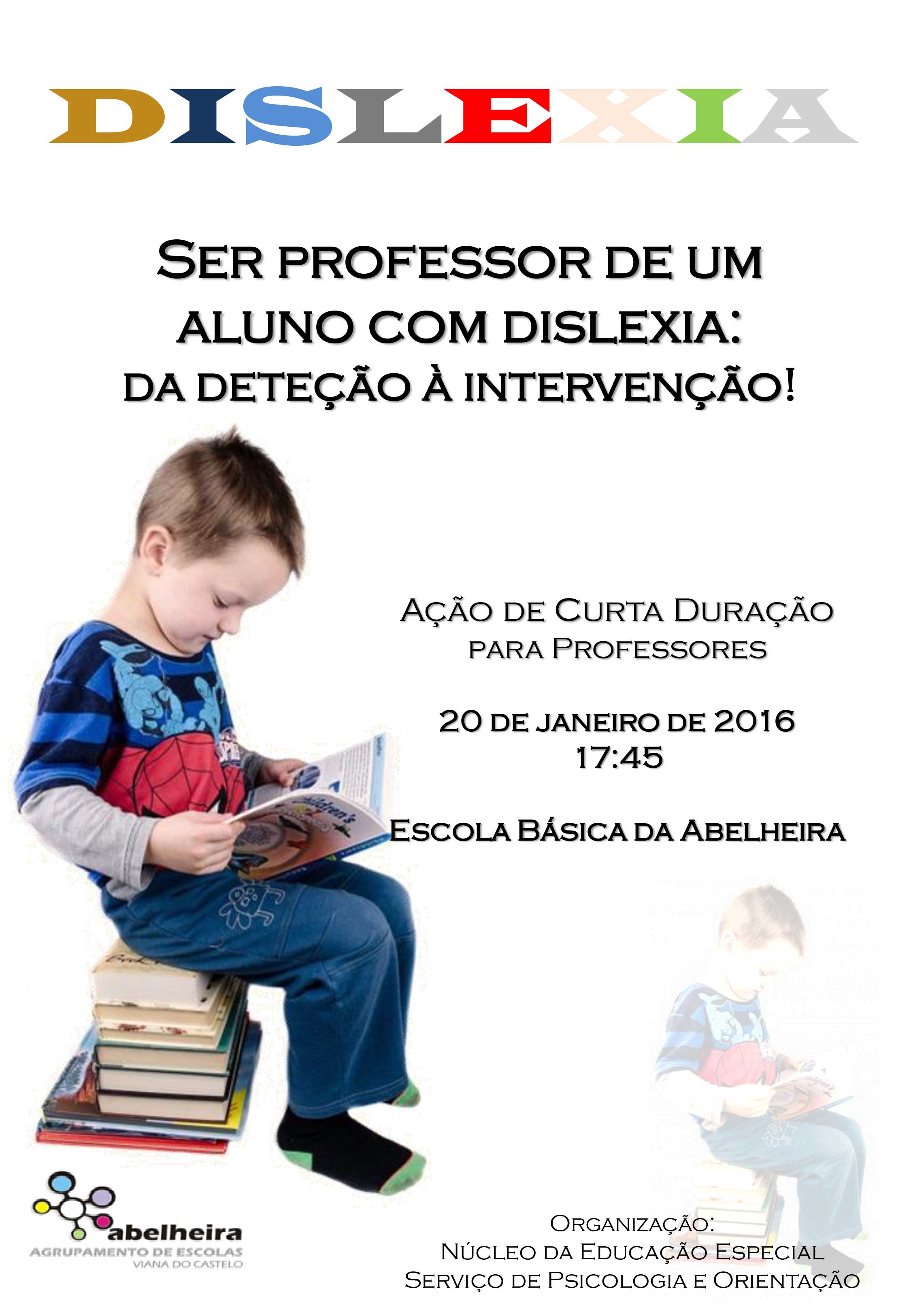 Irá decorrer na escola sede do Agrupamento (20 de janeiro de 2016- 17:45) uma Ação de Curta Duração para professores sobre a Dislexia.