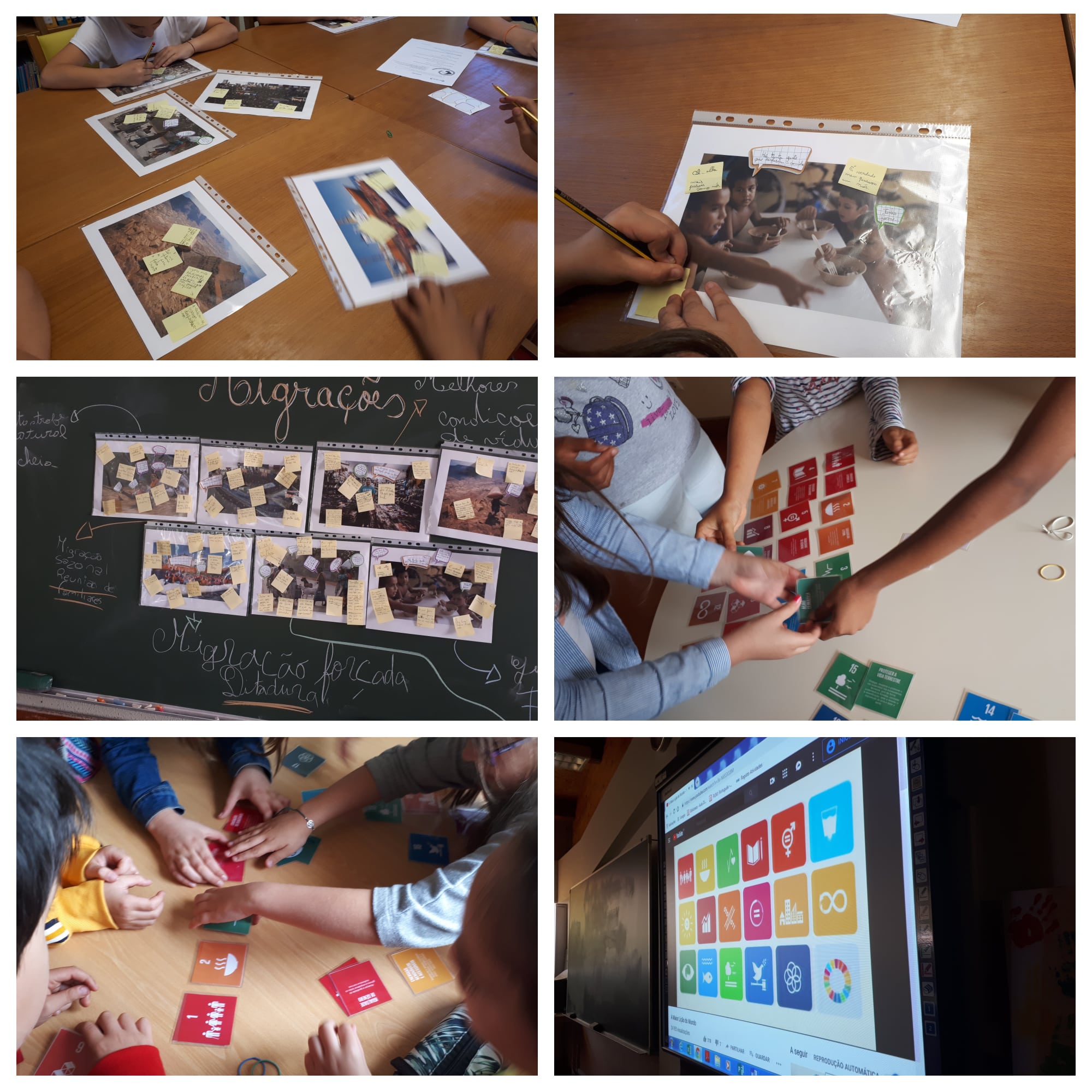 Este ano letivo foram desenvolvidas e aplicadas atividades relativas aos temas: ODS 2030-Objetivos de Desenvolvimento Sustentável da ONU, tendo-se focado no tema Migrações e Alterações Climáticas, quase na sua generalidade realizadas em grupo de alunos a partir de uma aprendizagem social “vivenciada” e dinâmica, com recurso a material diverso, colorido, manipulável e digital, com os quais os alunos puderam realizar trabalhos transversais ao currículo de exploração e criação diversificados.